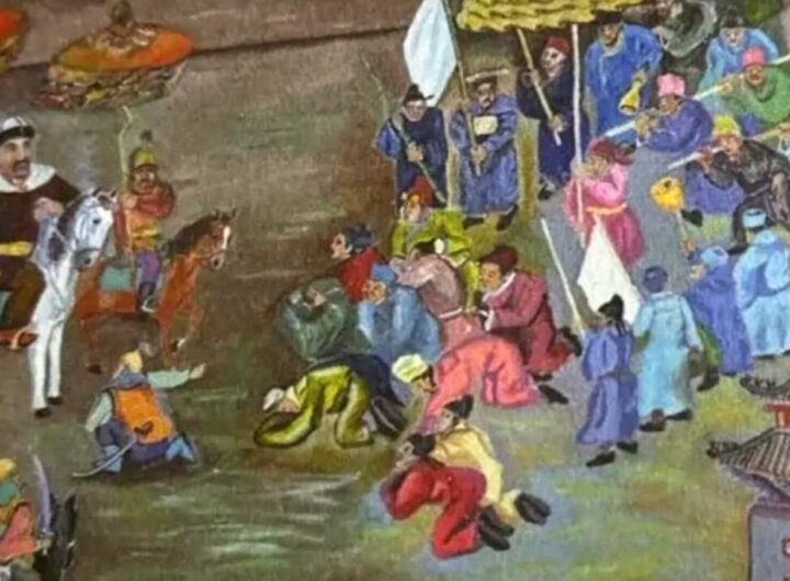 Sağlık Kırgızları ve Manas destanını tasvir eden resimler bulundu Kırgız Manas Destanı Uzmanı Temirbek Toktogaziyev ile Çinli...